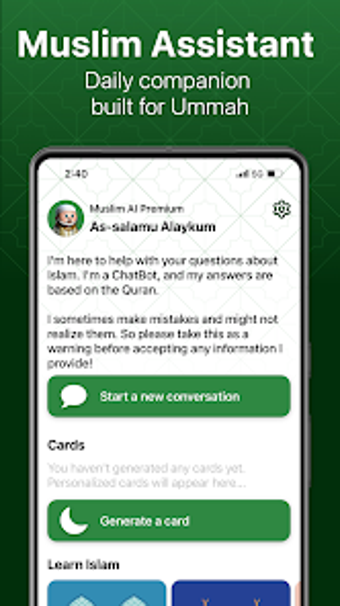 Muslim AI: Dua Islam Assistant, günlük ibadetlerinizi ve Kuran çalışmalarınızı kolaylaştırmak için geliştirilmiş akıllı bir uygulamadır. Yapay zeka teknolojisi ile desteklenen bu uygulama, Müslümanların ihtiyaçlarına cevap verecek şekilde tasarlanmıştır. Uygulama, dua kartları oluşturma, selam mesajları gönderme ve İslam'ı öğrenme gibi çeşitli özellikler sunar. Ayrıca, ibadet zamanlarını takip etme ve dua okumada yardım sağlar.